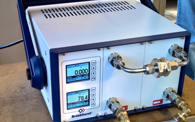 工藝方案Bronkhorst流量壓力解決方案包含壓力計(jì)(Bronkhorst EL-PRESS PM51 壓力模塊),它是用于控制上游的流量控制器的傳感器。當(dāng)配氣裝置在測試過程中發(fā)生故障時,壓力計(jì)檢測到低于初始10bar的壓力,然后迫使流量控制器向系統(tǒng)輸送氣流。此時,當(dāng)該流量是非零值時,檢測到確實(shí)泄漏。配氣裝置制造商稱該系統(tǒng)具有可靠的壓力傳感,結(jié)實(shí)耐用。 對于該泄漏測試應(yīng)用,壓力計(jì)(例如EL-PRESS系列)和流量控制器(例如EL-FLOW系列)的組合比傳統(tǒng)的壓力控制器和流量計(jì)組合要好。傳統(tǒng)的組合應(yīng)用下,當(dāng)壓力控制器希望很快達(dá)到其設(shè)定值時,存在可能會在初始階段丟失信號的風(fēng)險。Bronkhorst裝置的優(yōu)點(diǎn)是穩(wěn)定控制流量,永遠(yuǎn)不會太高。 該裝置包含15 μm過濾器,以防止?fàn)t灰顆粒進(jìn)入流量控制器,對裝置造成損害。如果過濾器堵塞,可以通過反向吹掃來清洗,因此無需拆卸裝置來清洗過濾器。一般情況下,該裝置帶數(shù)字控制面板,用于控制和顯示設(shè)置??刂泼姘逋ㄟ^RS-232系列端口使用Bronkhorst軟件連接到計(jì)算機(jī)系統(tǒng)。如需修改,可納入電位計(jì)來手動調(diào)整設(shè)置,其包含模數(shù)轉(zhuǎn)換器。 |